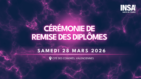 Promoción 2025, el INSA Hauts-de-France le invita a su ceremonia de graduación en la Cité des Congrès de Valenciennes a partir de las 12:30 h. Por la tarde, a las 19:00 horas, tendrá lugar la Gala INSA Hauts-de-France; una edición situada bajo el lema: Atlant'INSA - bajo el océano, organizada por la asociación de estudiantes NUIT INSA.