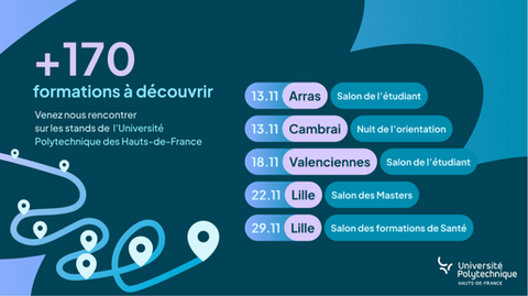 Venez rencontrer l’Université Polytechnique Hauts-de-France au Salon de l’Étudiant de Valenciennes, le mardi 18 novembre 2025, de 9h à 17h, à la Cité des Congrès de Valenciennes.